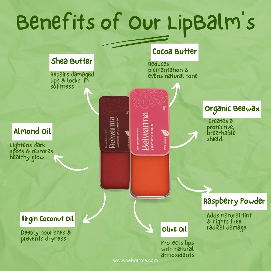 "A rich, hydrating lip balm crafted with natural butters, oils, and raspberry powder to keep your lips soft, smooth, and nourished all day."